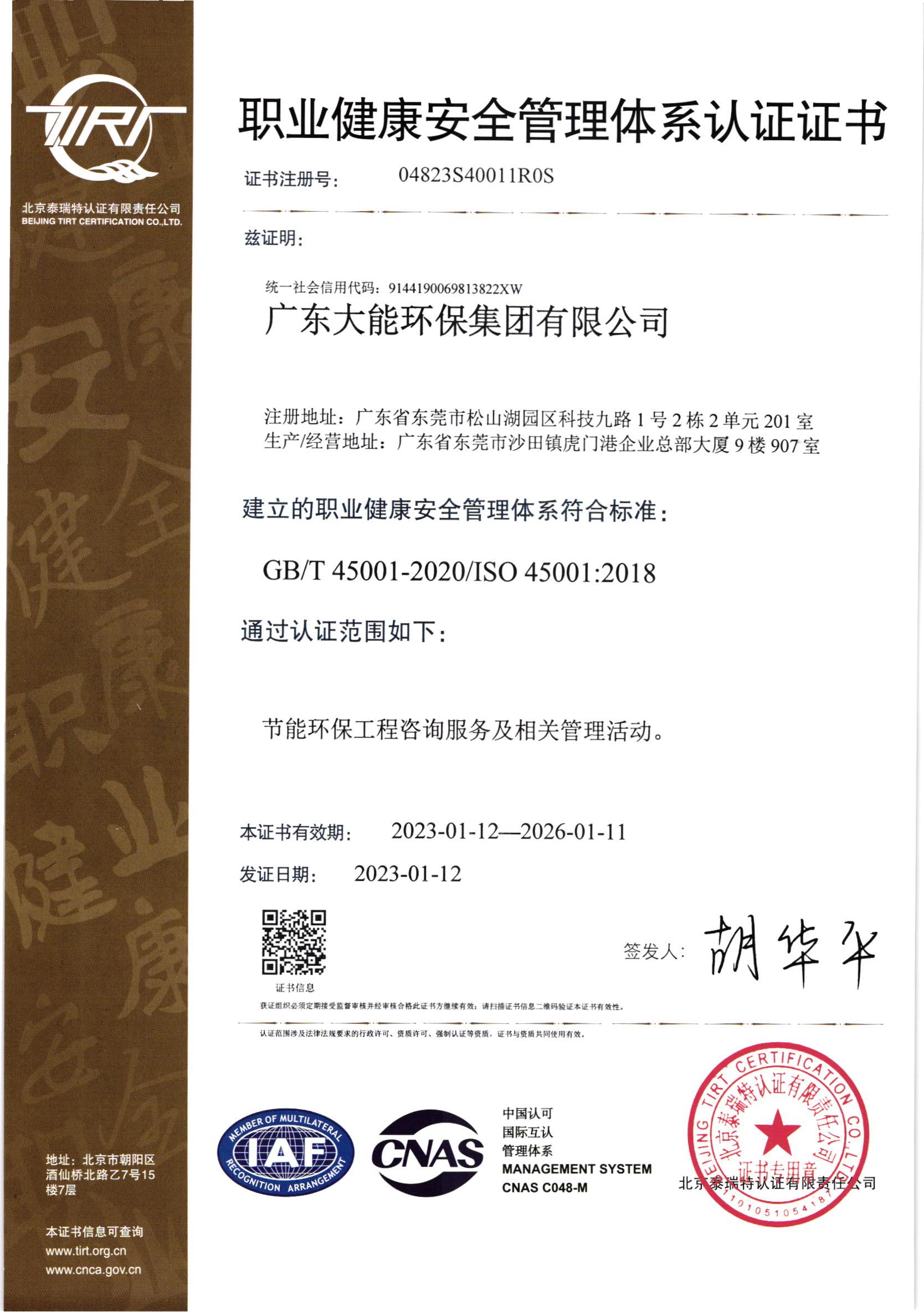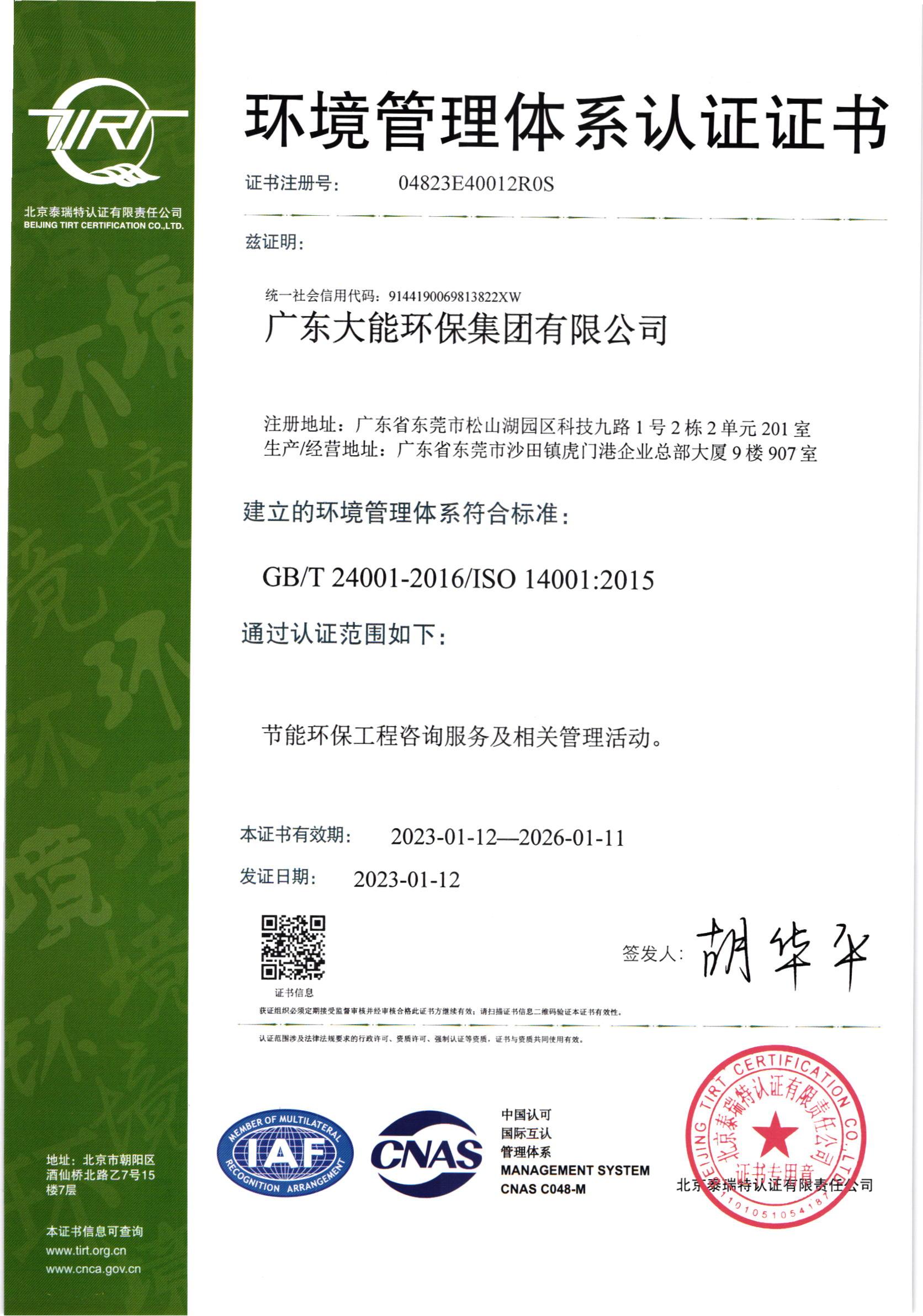 祝賀廣東大能環保集團有限公司順利獲得ISO三體系認證!